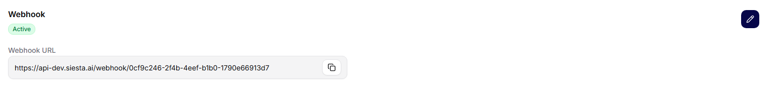Webhookar i Siesta AI erbjuder ett enkelt och säkert sätt att koppla plattformen till externa system. Tack vare överskådlig hantering, koppling till API-nycklar och möjligheten att aktivera eller inaktivera kan webhookar enkelt kontrolleras och hanteras. Om du använder en webhook som trigger rekommenderar vi att koppla dess användning till Workflows.